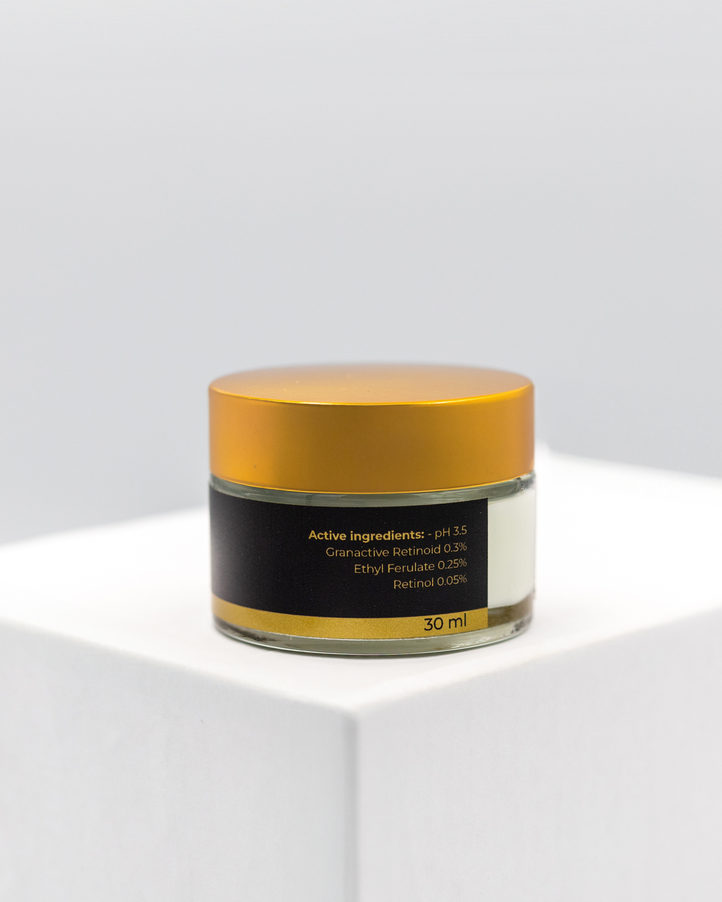 Granactive Retinoid 0.3%, Retinol 0.05%, Hylasome EG 10, Ethyl Ferulate 0.25%